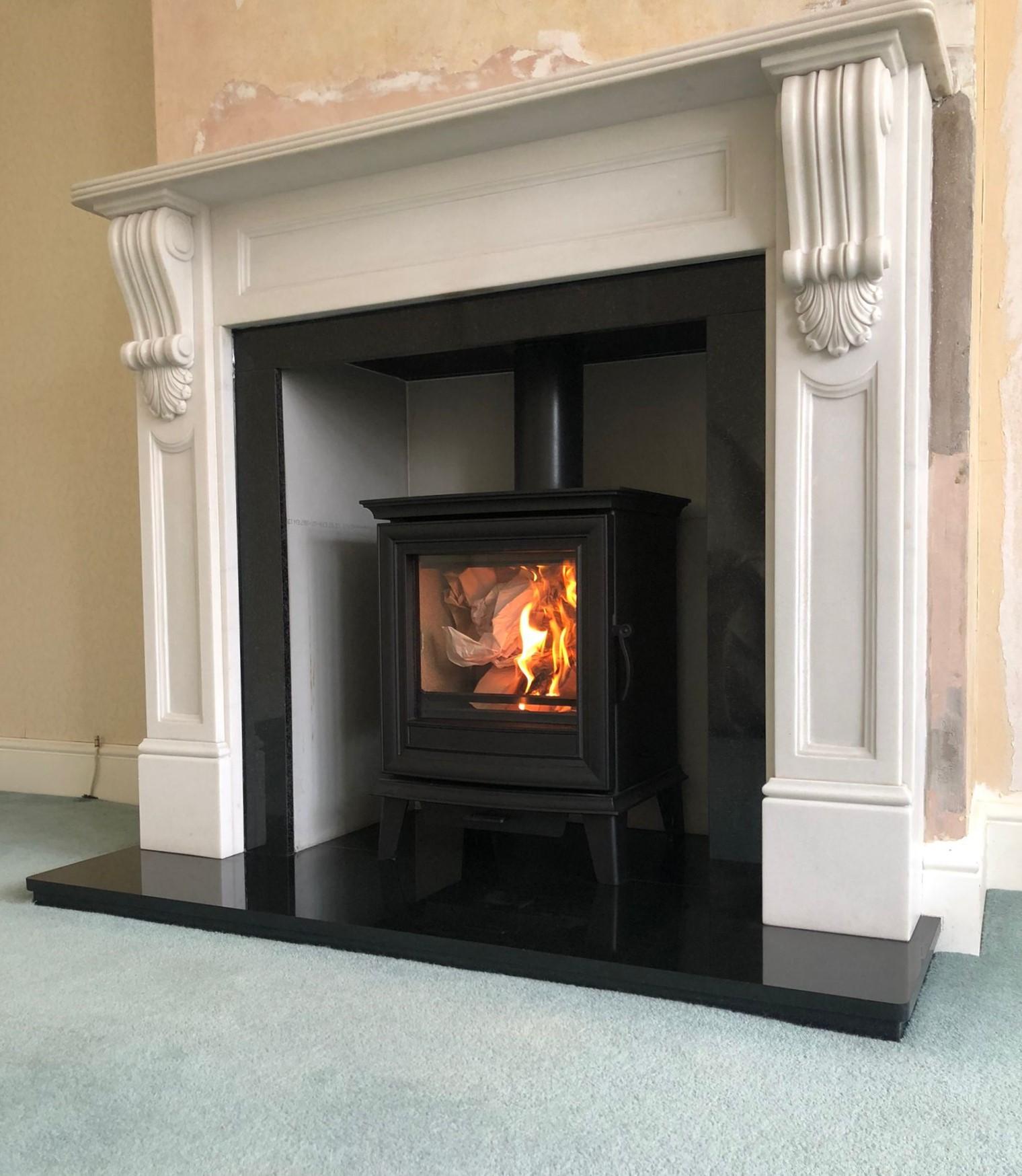 Stovax Chesterfield 5 Multi-fuel Stove with Polished granite hearth and surround.