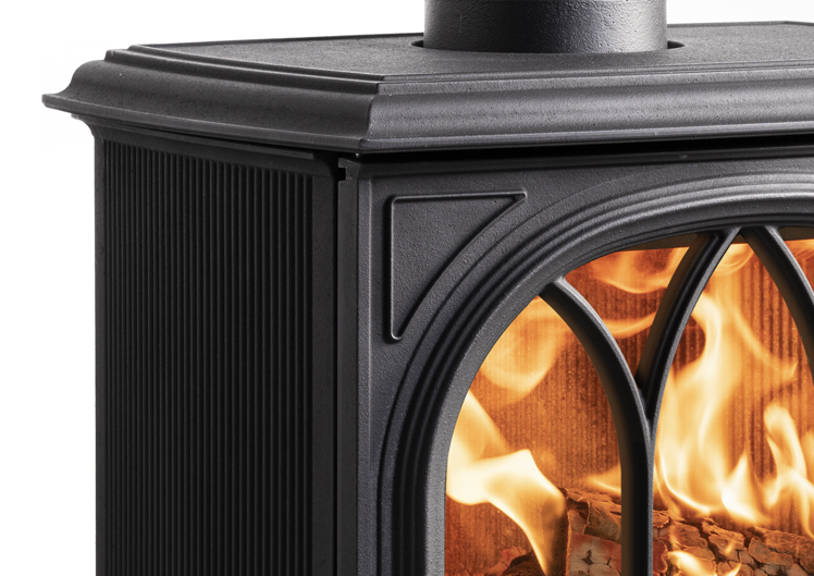 Tasteful detailing decorates each Huntingdon’s cast iron door, side panels and top plate — testament to the craftsmanship behind each stove.