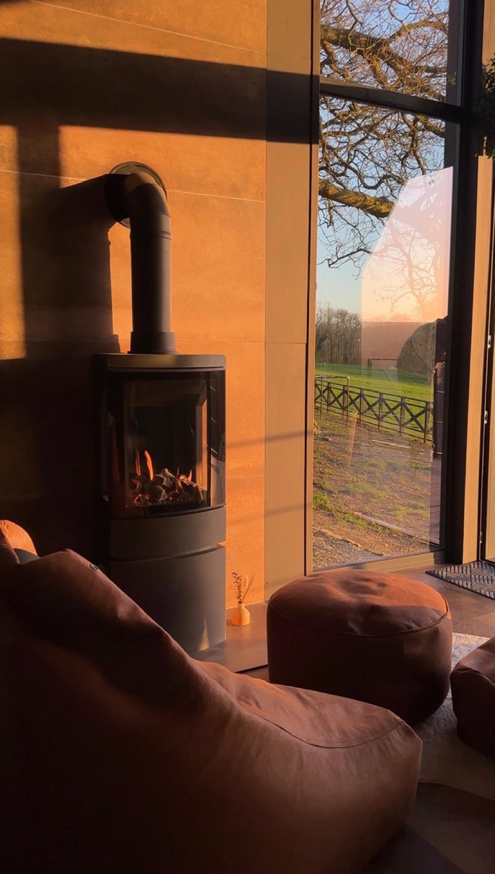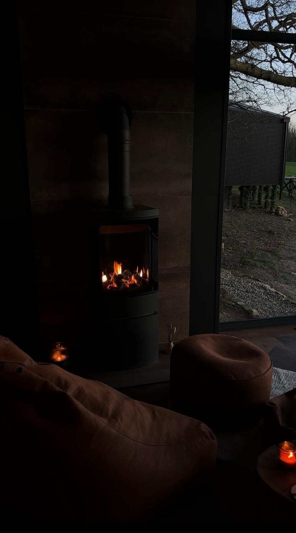 The fire is central to the entire atmosphere of the lodges, particularly from autumn through spring. Guests frequently mention it in reviews — it’s one of those details that elevates a stay from comfortable to genuinely memorable. There’s something primal about an open flame that no amount of underfloor heating can replicate. For us, a fire isn’t a feature — it’s fundamental to the experience we’re creating.