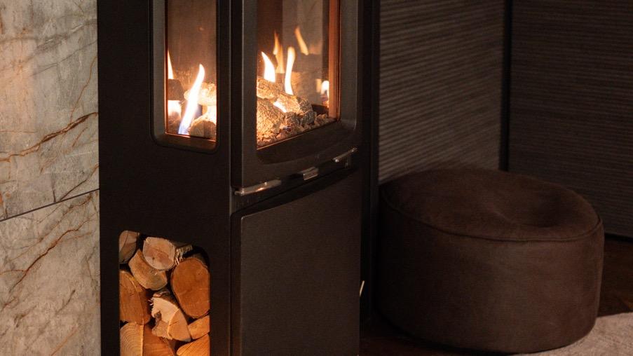 We have three Gazco gas fires across the lodges, each chosen to suit the individual character of the space.