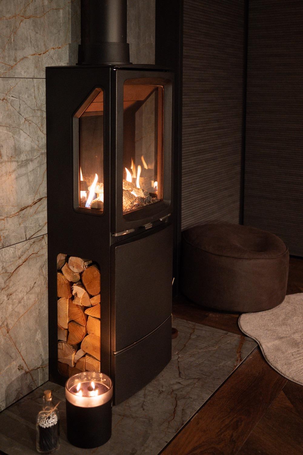 We also love the simplicity of the remote control. Guests can adjust the flame and heat from the sofa without a second thought — it’s a small detail that makes the whole experience feel effortless and considered.