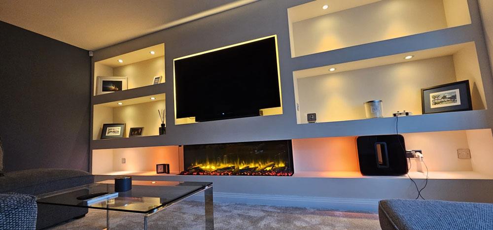 We were considering having a media wall built without the fireplace but opted to have it in the end and we are so glad we did. The unit just makes the room feel so much more homely and warm but at the same time modern and contemporary.