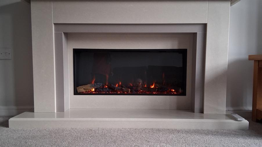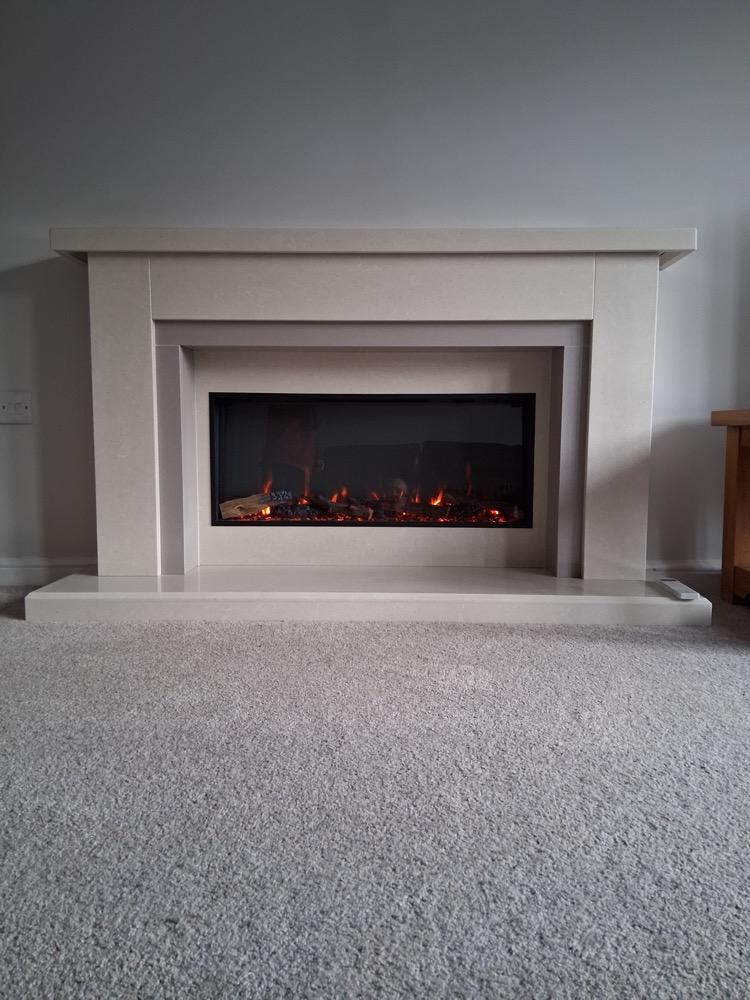 Our new fire provides a fantastic focal point to our otherwise bland lounge. In it’s custom surround it looks fabulous.