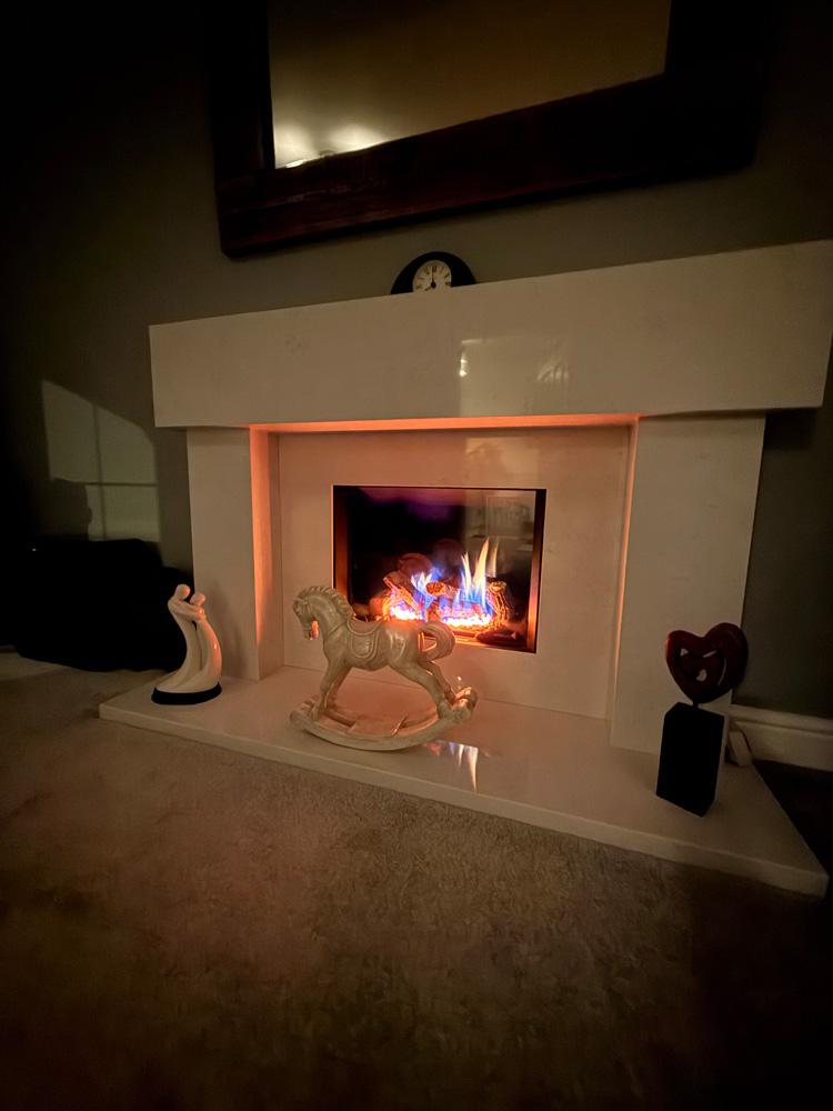 Our lounge has taken some while to renovate, but it’s now finished and the fire makes it feel so warm and cosy with the lovely glow of the flames.