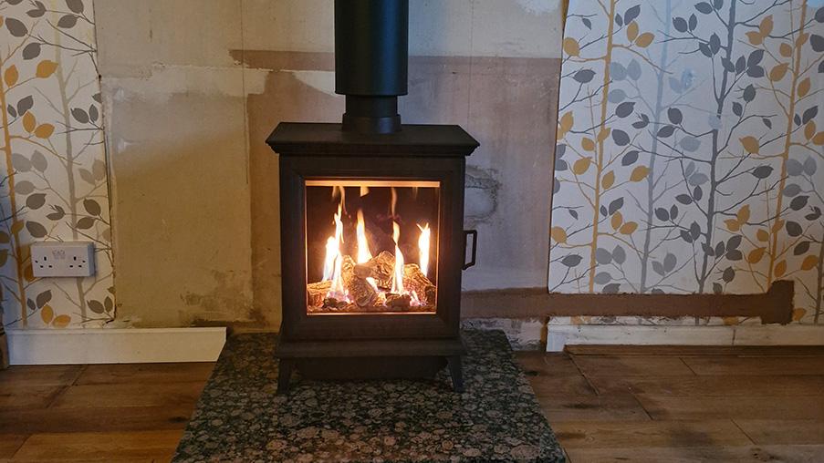 We owned a log burner at our previous house but now retired we wanted an easier version so went with the Gazco Sheraton 5. It is even better than we imagined! We have no chimney and we couldn’t put the flue through the outside wall as this was the garage. We have had a conventional flue that looks very contemporary and has given us the heat output we need on a cold winter’s day. Very, very pleased with our new purchase!