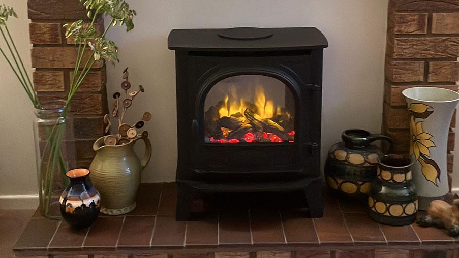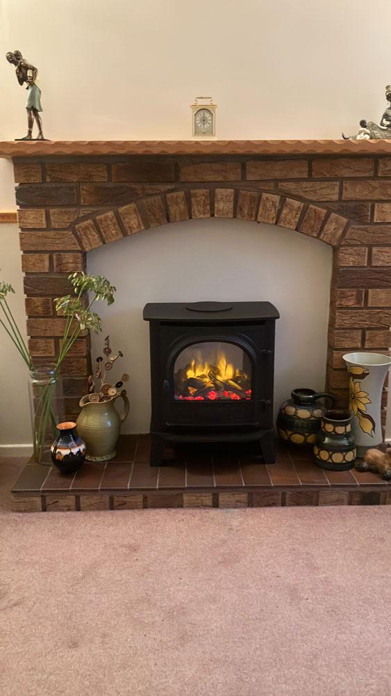 We originally chose a more modern-looking electric fire but it wasn’t compatible with our space. So glad it wasn’t now! We then decided to go for something more traditional-looking and we chose the Stockton 5 Electric Stove instead – we are so pleased with it. It makes our lounge feel warm and cosy with just the flames flickering at the moment; can’t wait for the winter months when we need the heat as well!