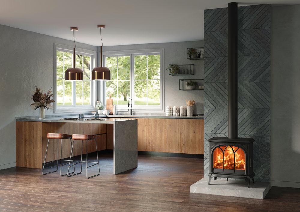 The Ecodesign Stovax Huntingdon 40 is a large format wood burning stove designed to provide optimal heat output for larger rooms and spaces. Huntingdon 40 log burners combine the timeless appeal of traditional cast iron styling with a state-of-the-art convector combustion system that reduces clearance requirements. Available with a choice of tracery or clear door, both options boast a wide viewing window, offering magnificent flame views. The Huntingdon 40 is also DEFRA exempt, making it suitable for use anywhere in the UK. For those who prefer a stove that sits slightly taller, Huntingdon stoves also offer the option of longer legs, increasing the total height whilst maintaining the overall aesthetic.