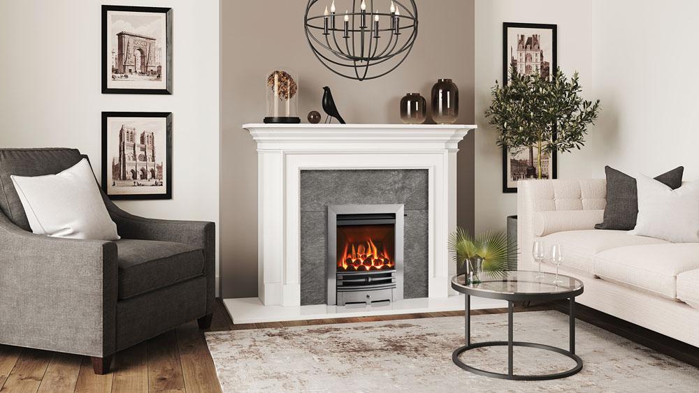 The classic Chartwell front for the Gazco Logic inset gas fire range is more traditional in style, bringing a touch of unassuming luxury into a room.