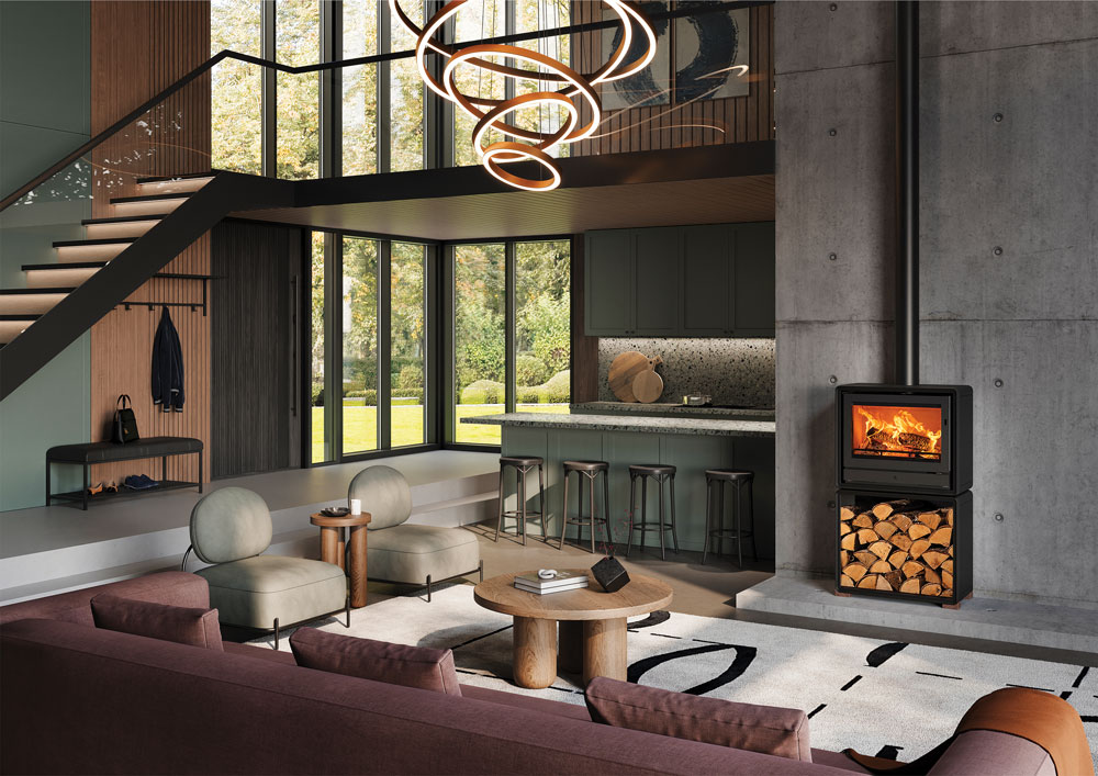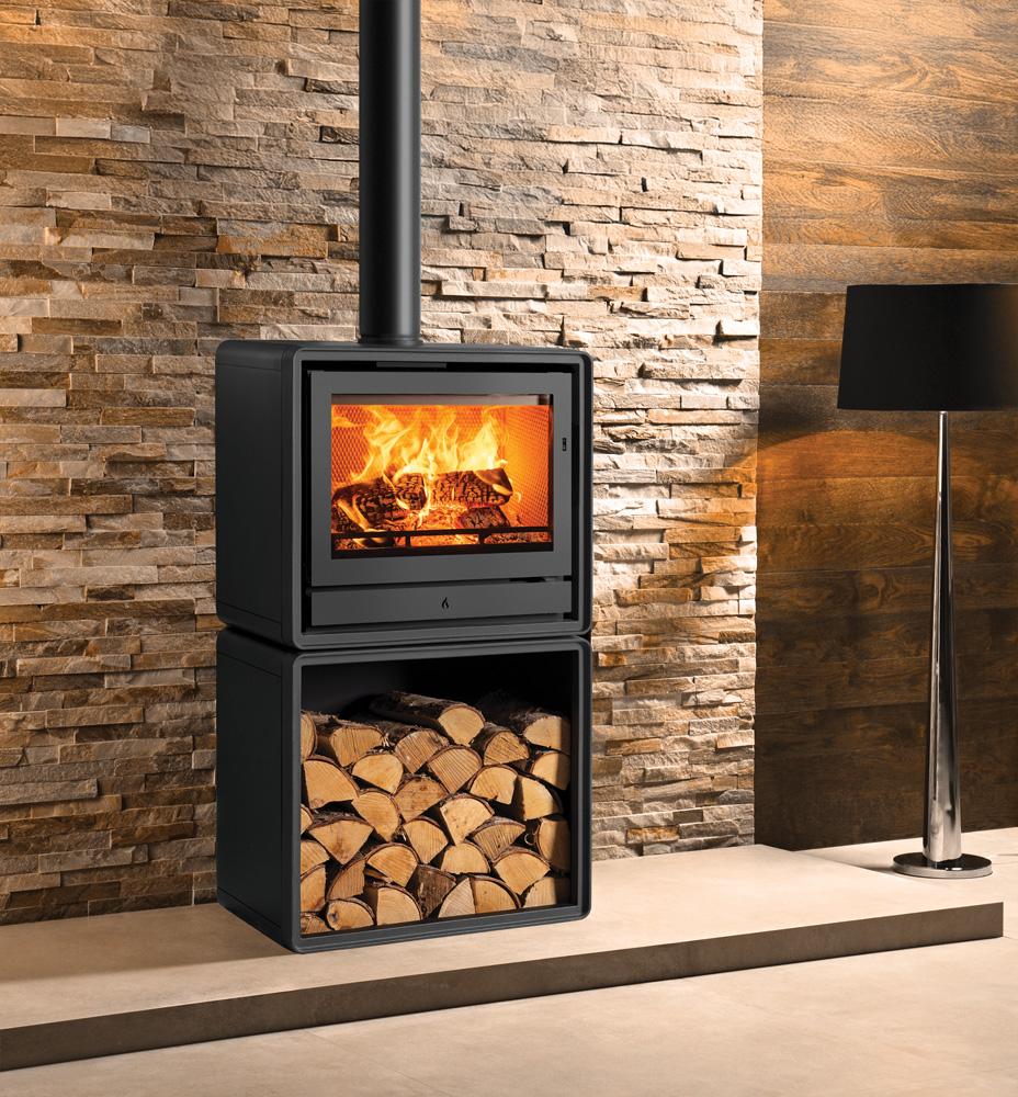Enjoy all the impact of industrial-chic design with the freedom to position your stove where you need it. Furthermore, personalise its look with one of the styling options various – from a choice of feet finishes, to an impressive and practical log store base that elevates the rolling flame visuals.